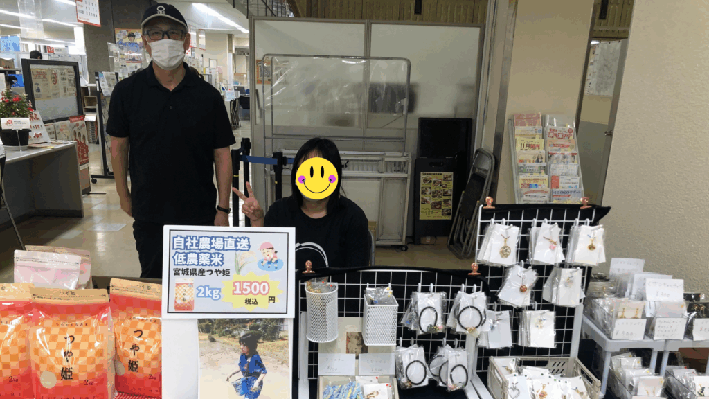 ピアショップでお米とアクセサリーの販売大盛況!(浦和) 2025-10-02 最終更新日時 : 2025-10-02 かたく里 スタッフ 浦和区役所でお米とアクセサリー(ピアス、イヤリング、チャーム)をピアショップ販売しました。おかげさまで盛況で賑わっておりました。当施設の利用者さんもお客様と楽しそうに話され、接客していました。